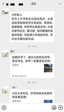 除夕当天,原本该是家家户户热闹的团圆时刻。由于疫情逐渐蔓延,态势严峻,学院的防控工作不得不变得紧张起来。当天上午,学院党政班子通过线上微信群就已经成立工作小组,开始部署疫情期间的教学、科研、管理、服务工作,保障各项工作扎实推进,为开学做准备。