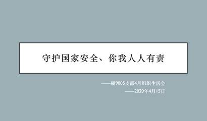 2020年4月15日,硕9005党支部召开“疫情下的国家安全”的国家安全组织生活讨论会,会议由党支部书记罗丹主持,参会人员为硕9005班的全体党员和预备党员同志。