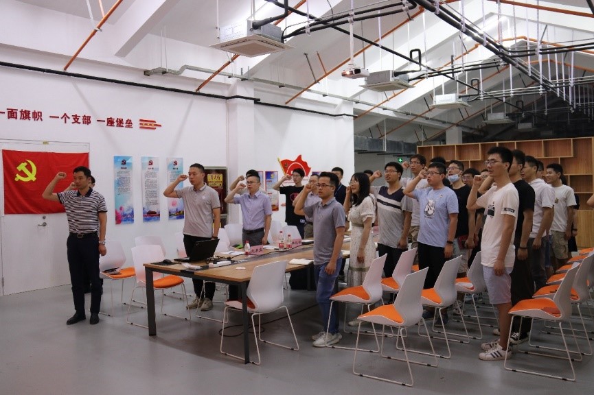 在学院分党委委员雷亚国教授的带领下,全体教师学生一起举起右拳,重温入党誓词,在大家洪亮振奋的声音和振奋的精神中,会议正式开始。