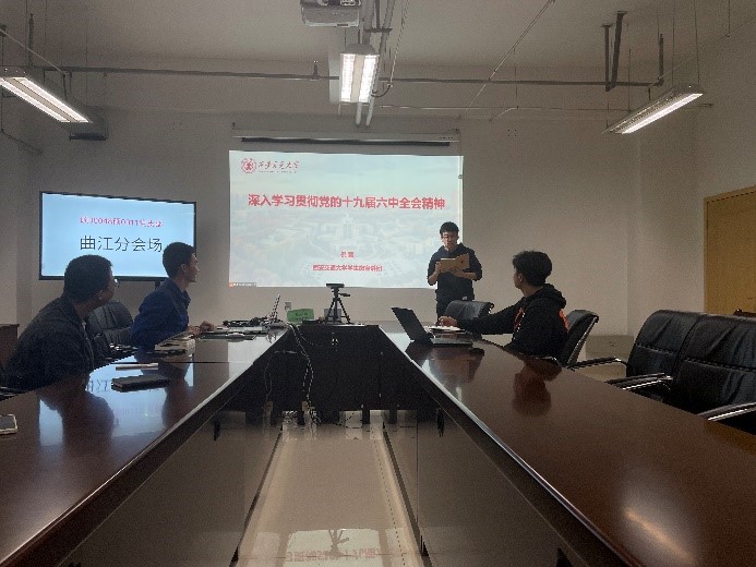 为深入学习贯彻党的十九届六中全会精神,准确领会《决议》的深刻内涵、创新观点、核心要义,新葡的京集团4321硕0004党支部与硕0011党支部邀请新葡的京集团4321学生微宣讲团团长倪蒙开展党的十九届六中全会精神宣讲活动。本次宣讲活动设创新港主会场和曲江分会场。