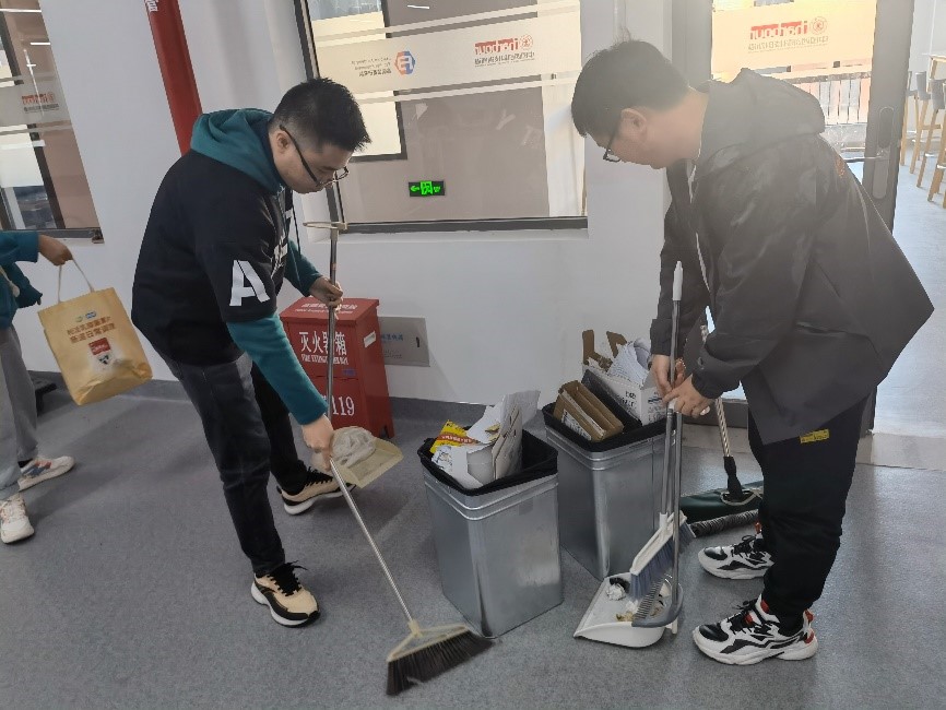 高尔基曾说我们世界上最美好的东西,都是由劳动,由人的聪明的手创造出来的。为体会劳动者的不易,10月16日下午4时,新葡的京集团4321硕1004班全体成员对3-2区域进行了“劳动包干”。