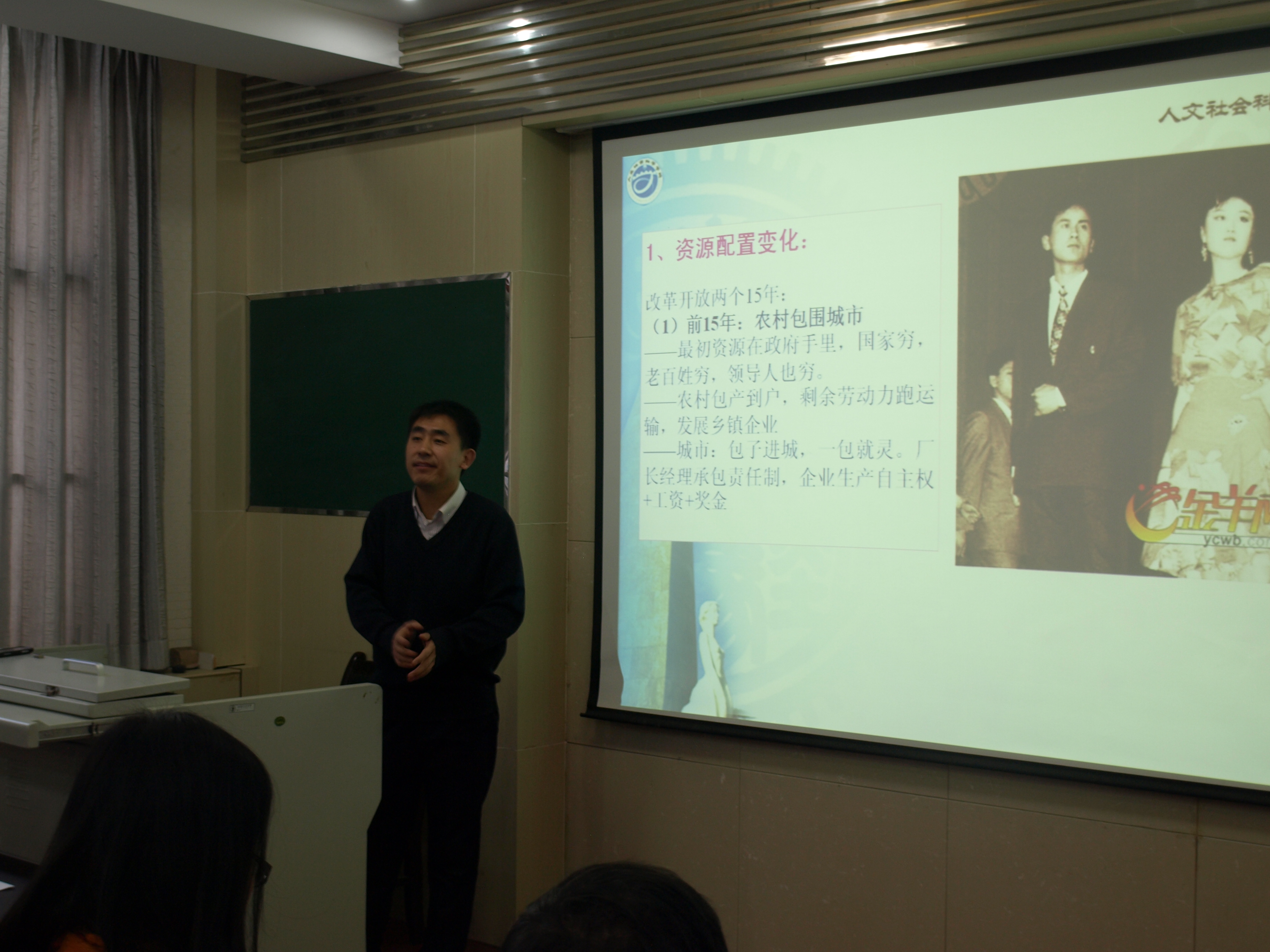 燕连福老师紧紧围绕中国改革开放以来的历史变化和当前的社会大背景,以及中国社会经济生活的深刻变革,揭示了我国当前复杂的社会矛盾,以及我党必须坚持走改革开放道路的重要意义。同时,希望交大学子,特别是学生干部和党员应该肩负起的社会责任。同学们在报告过程中认真听讲、细心记录,并在会后与燕教授对关于社会问题的诸多疑问和看法进行了探讨和交流。