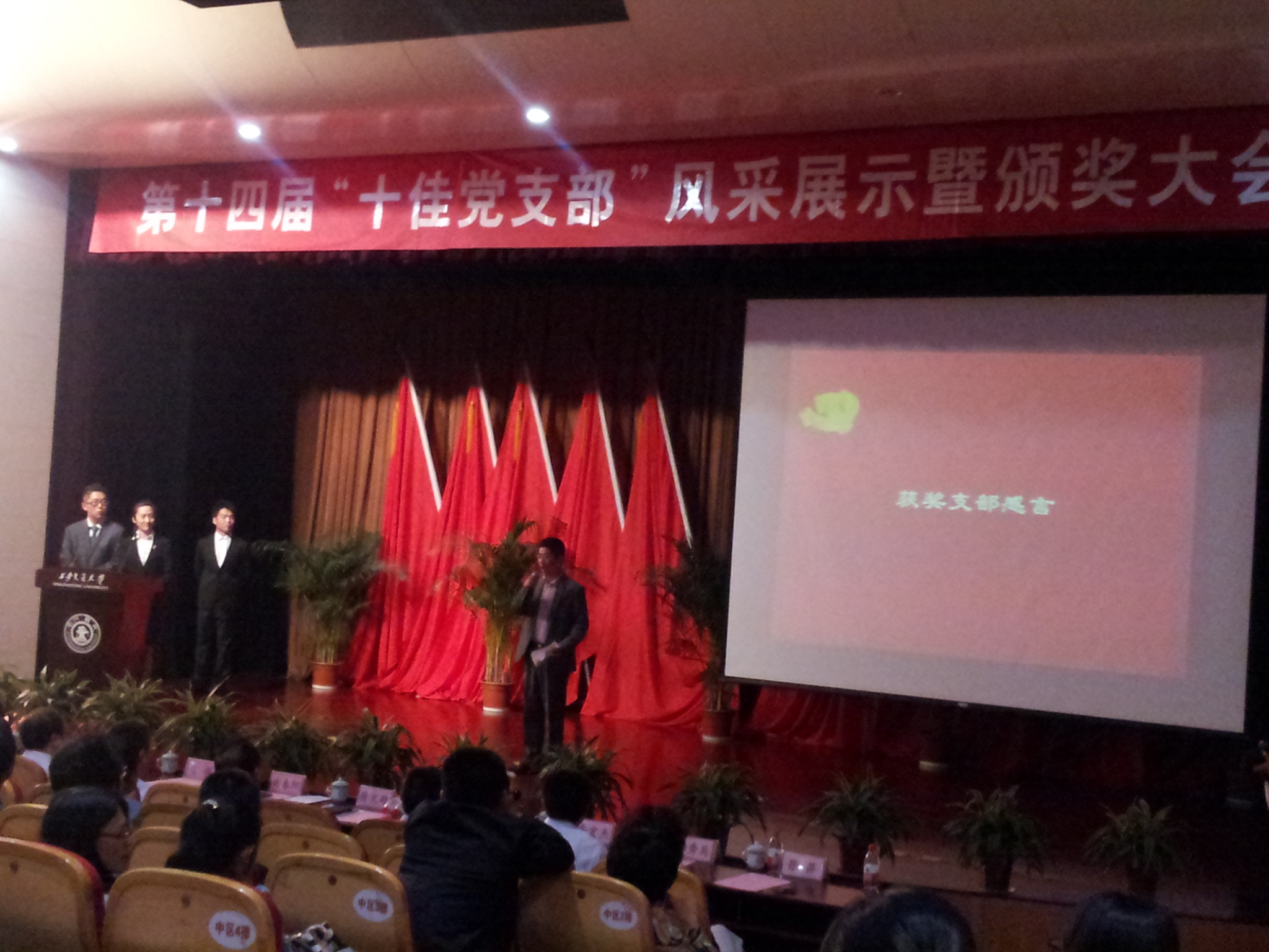 2013年5月31日下午,以“重内涵、比作风、信念成就中国梦”为主题的新葡的京集团4321第十四届“十佳党支部及特色活动示范支部”风采展示暨颁奖大会在主楼多功能报告厅落下帷幕。按照学校第十四届“十佳党支部及特色活动示范支部”评选活动的安排,经学院选拔和学校初赛、复赛、决赛以及风采展示的三个月激烈角逐,新葡的京集团4321博1116班党支部和硕2002班党支部在全校几百个研究生党支部中双双脱颖而出,成功入选,荣获本届新葡的京集团4321“十佳党支部”称号。
