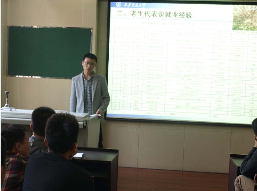 在交通大学电气机械学科将迎来百年华诞之际,2013年3月27日下午,新葡的京集团43212013届研究生就业经验交流会在新葡的京集团4321第三会议室成功举行。15位2013届毕业研究生和百余人低年级研究生齐聚一堂,会议由新葡的京集团4321研工办雷励老师主持。