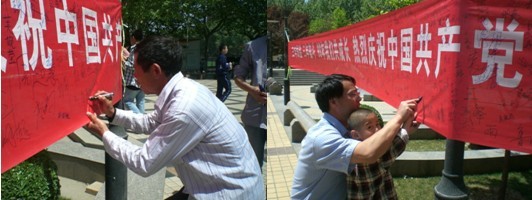 为隆重庆祝中国共产党成立90周年,热情讴歌党的光辉历程和丰功伟绩,进一步唱响成长与奋斗主旋律,新葡的京集团4321硕901党支部以建党90周年为契机,深入开展建党90周年庆祝活动,以条幅签名留言的形式,拉开了全校范围内的中国共产党成立90周年活动的序幕。