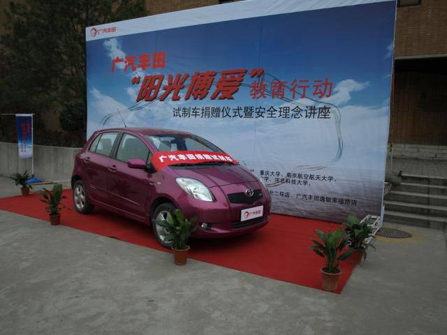 2010年11月18日,广汽本田向新葡的京集团4321、重庆大学、南京航空航天大学、燕山大学、长安大学等十所高校捐赠试制车,捐赠仪式在科学馆举办,本广汽本田综合管理部张华部长、研究开发中心谭为科长、新葡的京集团4321常务副院长高建民教授、以及南京航空航天大学、燕山大学、长安大学等十所高校学院院长以及研究生代表100余人参加了捐赠仪式。
